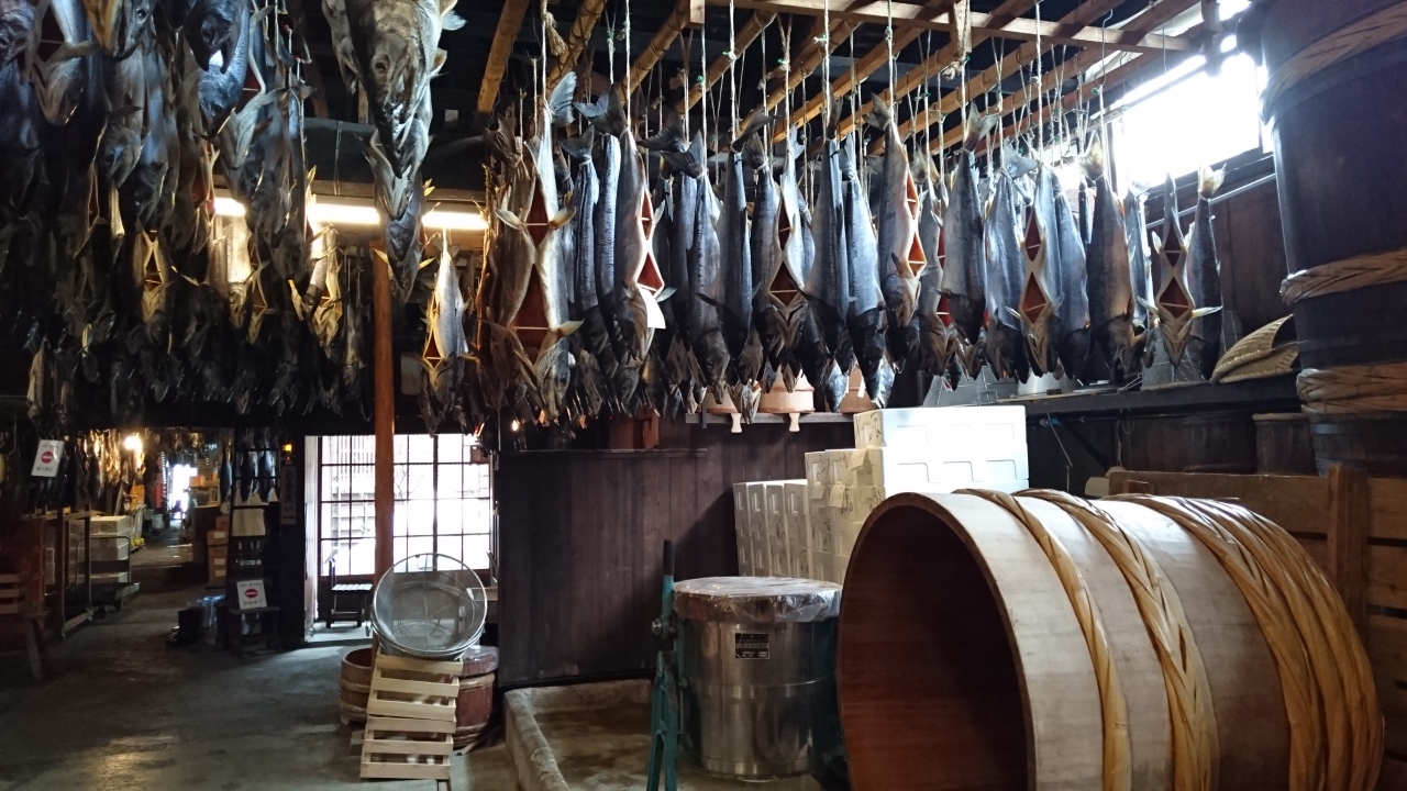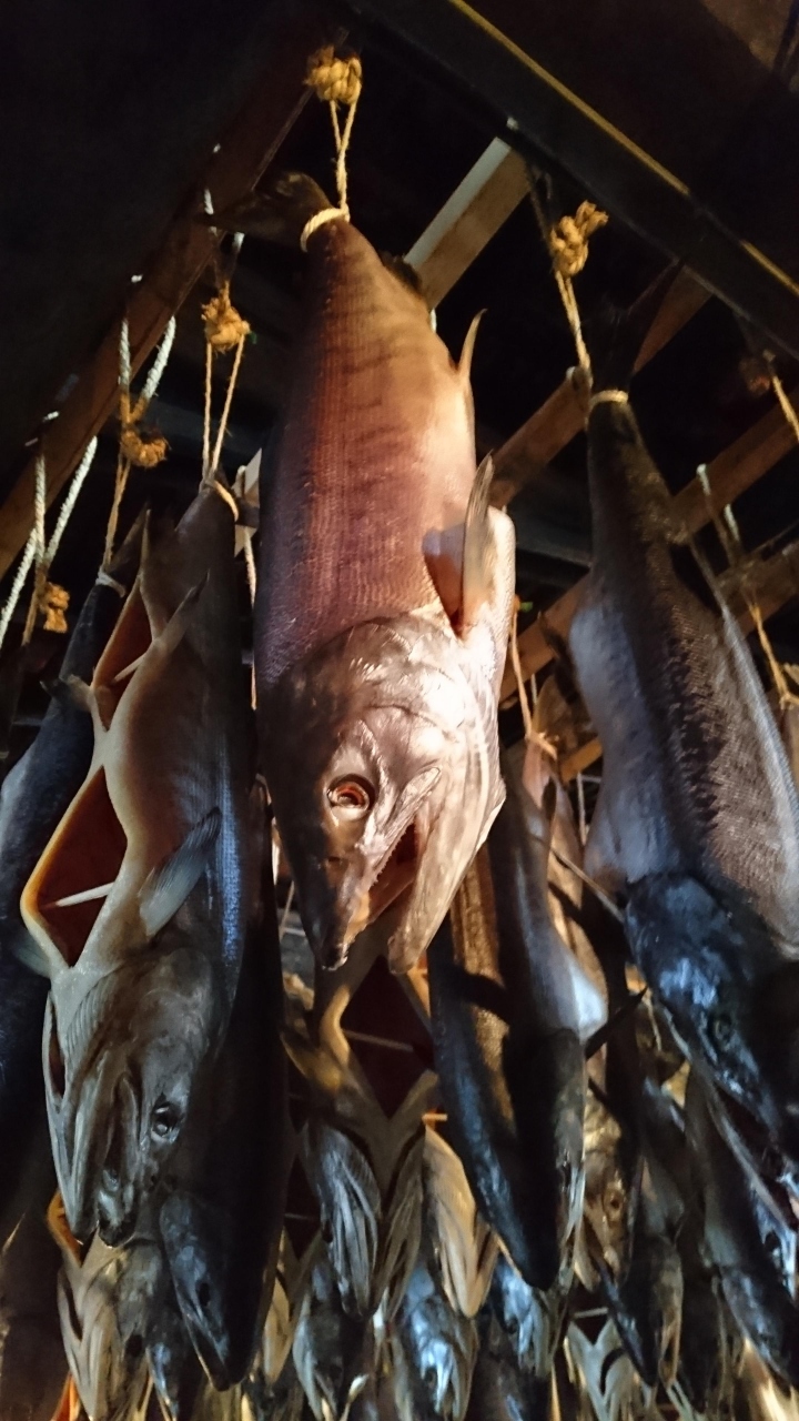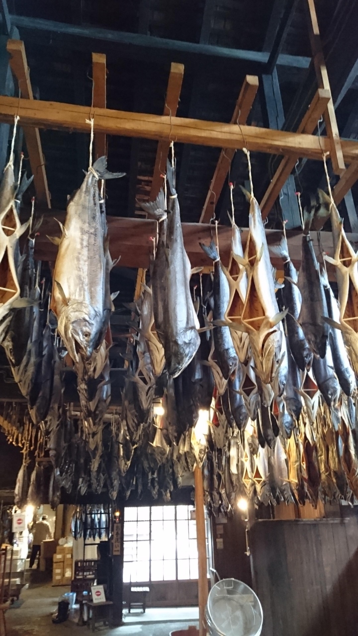 いくつもの塩引き鮭がずらっと吊るされた様は、見応え十分正しく圧巻です。