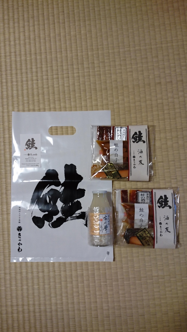 お土産に鮭の酒の友と天然甘酒雪の華を購入し家で楽しみます。- 旅行時期