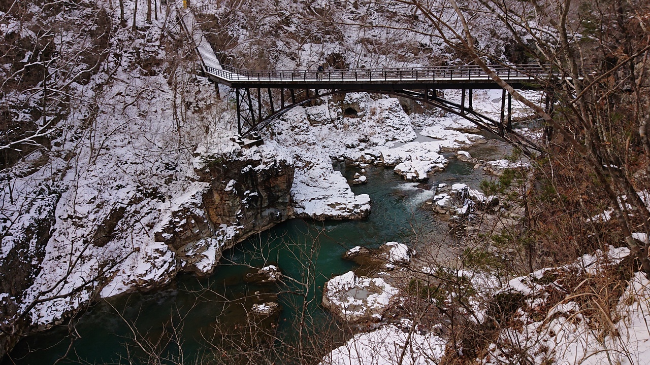 - 雪化粧を纏った渓谷も見応えありました。