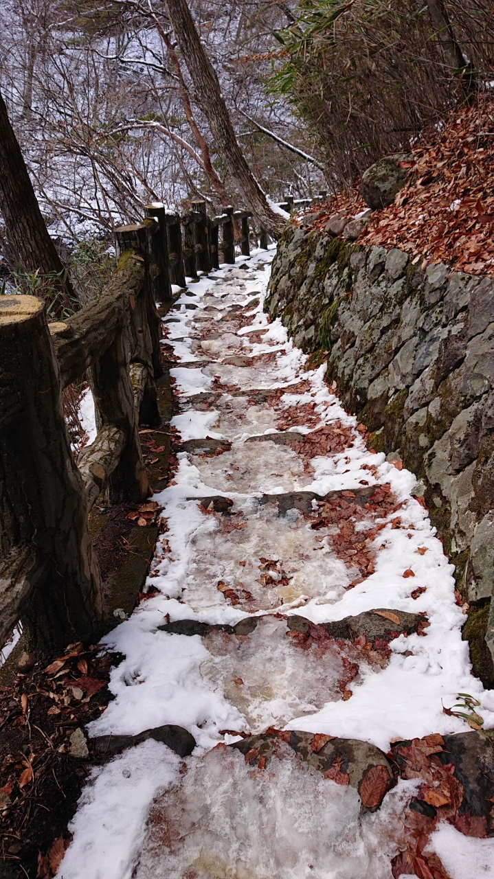 数日前に降った雪が一面を覆うまでではないものの、あちらこちらに残りかなり足元が悪い状況でした。