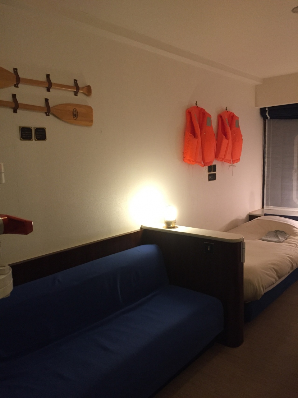新幹線とホテルがセットになったツアーで利用しました。クルージングキャビンのお部屋でエレベーターホールから船内を感じ部屋に入ると船室(^○^)狭いけど苦になるほどではなく大人2人なら充分。夢の国の続きにはもってこいのお部屋では?