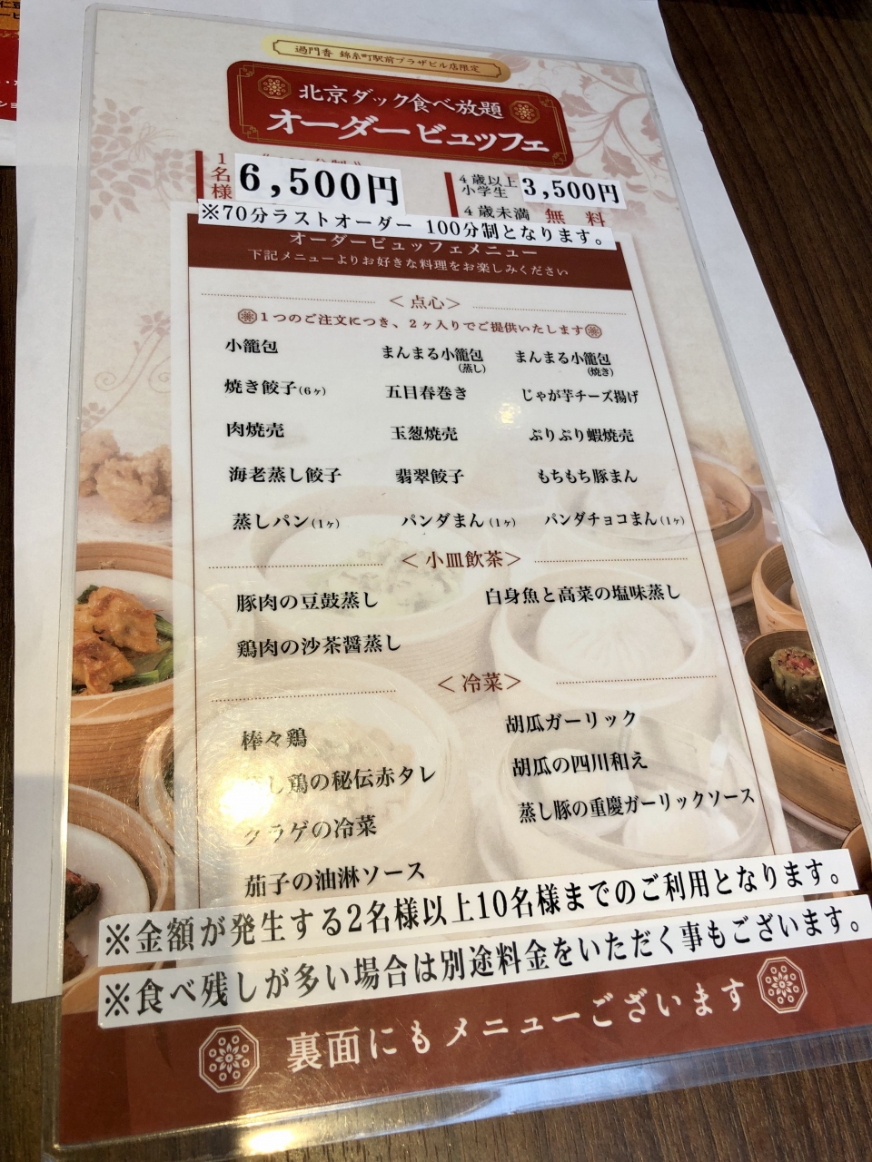 ゴールデンウイーク【北京ダック食べ放題】ビュッフェ50種 アイスウーロン+冷麺・蟹味噌料理(窓側確約席)というプランを利用しました(一人6500円)。