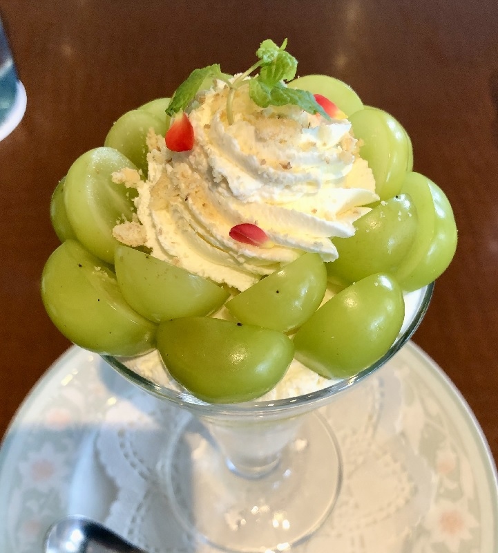 思ったより小さかったので、シャインマスカットパフェを追加で注文。