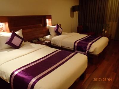 ツアーで参加し、ジュニアスイートルーム(?)に宿泊しました。お部屋は広くて良かったのですが、床が一部凹んでいたり、所々痛みが激しかったです。