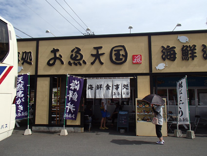 大洗海鮮市場の並びにあり、かあちゃんの店の向かいにあります。回転寿司と食事処で入り口が違います。食事処の方はお店の前でも食事が出来るようになっているようでしたが、そこは喫煙所にもなっていて非常にタバコ臭かったです。店内に入るにもそこを通過するので、喫煙者がいるとタバコの臭いがつきます。
