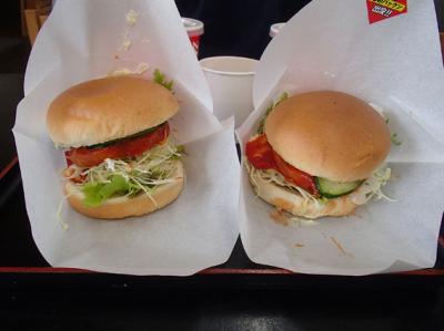 ナマズバーガー(なめパックン)を食べることができます。あまり美味しいものではありませんでしたが、記念にはなりました。食券で購入してからカウンターに券を出しますが、混むと食券販売を一時的に止めてしまいます。しばらくすると再開していました。混む時期は売り切れも多いようで、私たちは休日のお昼頃に行きましたが、鯉パックンは売り切れていました。
