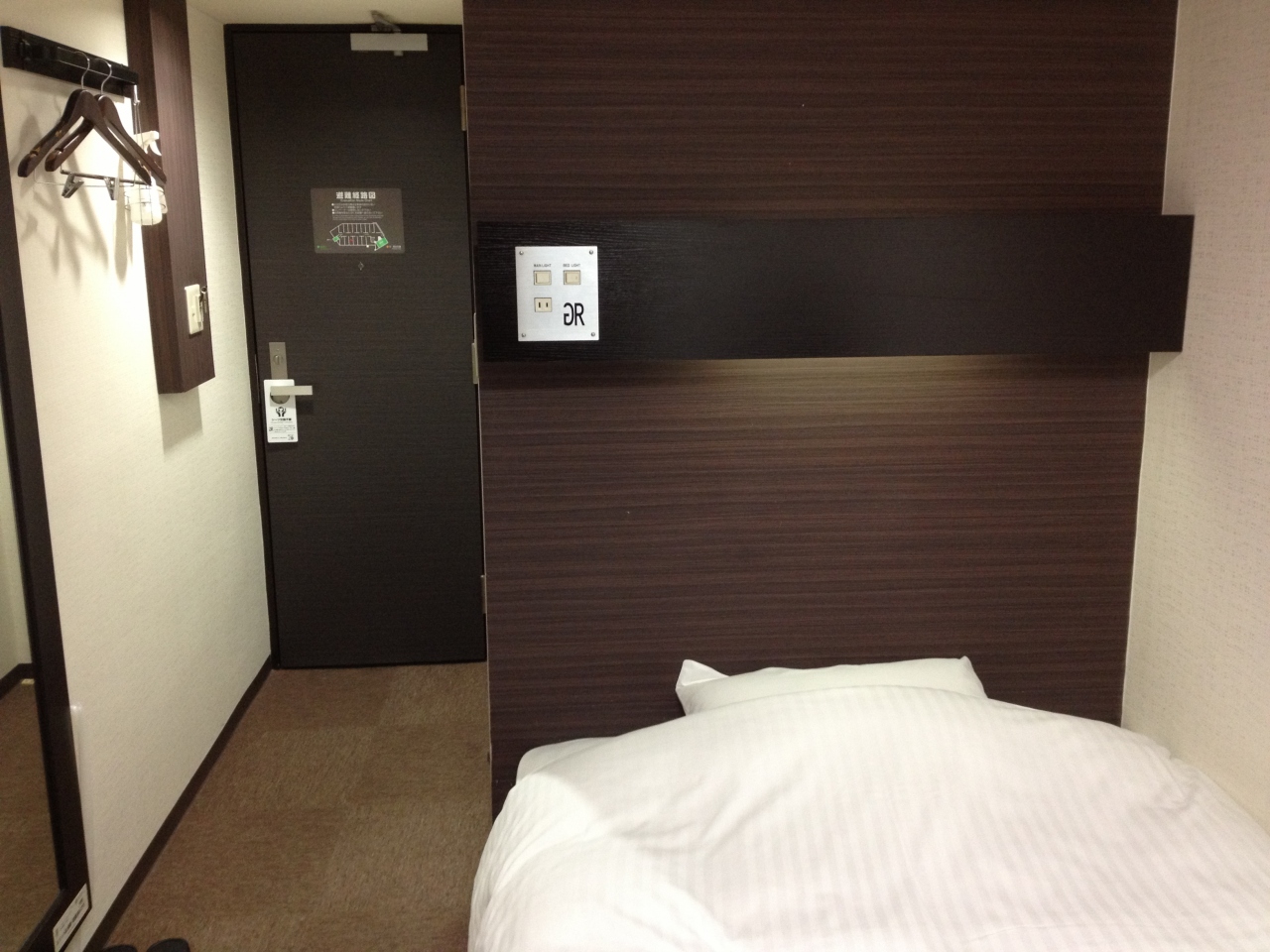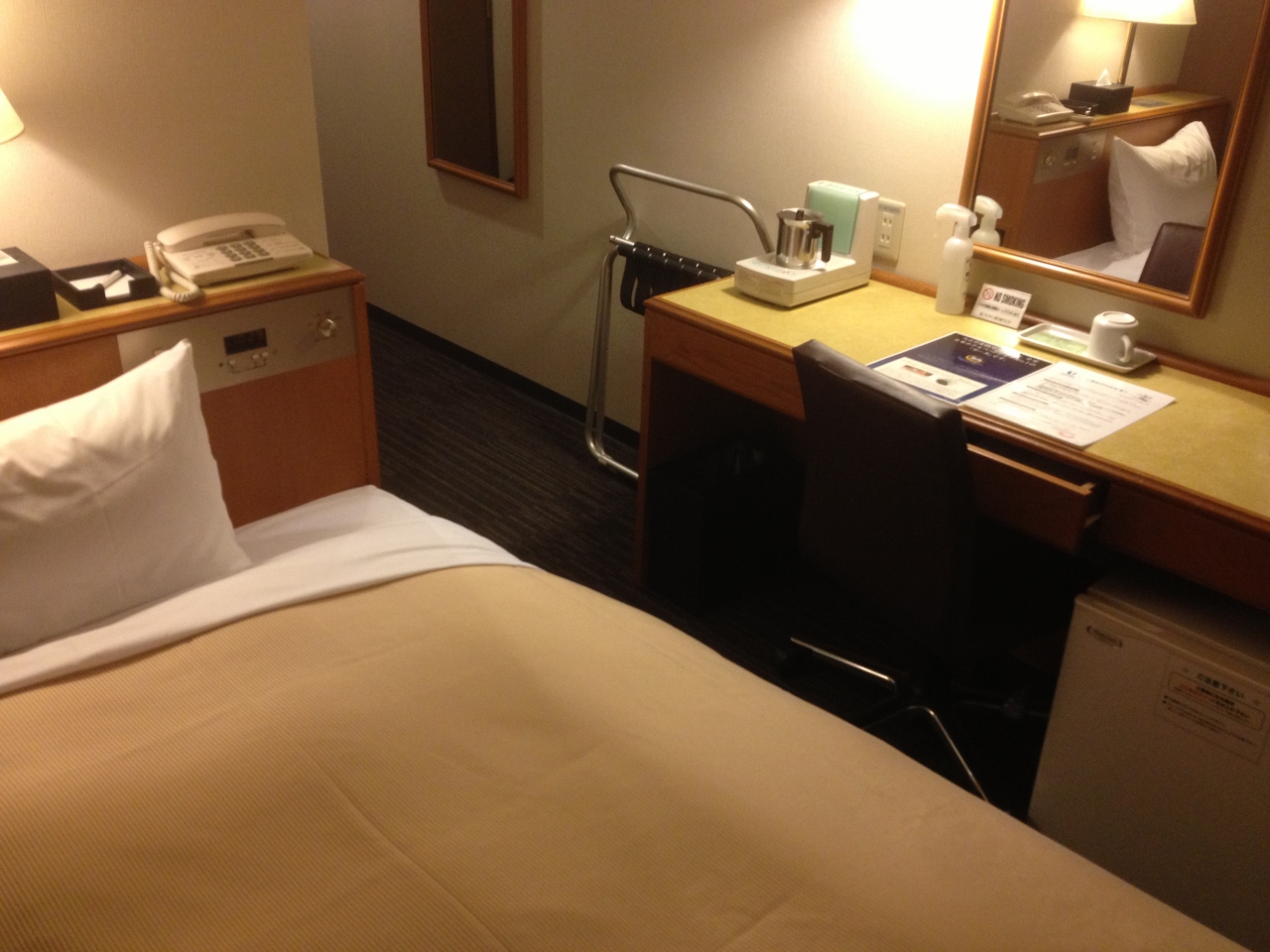部屋自体は狭いですが、大阪のビジネスホテルでは平均的な広さだと思います。