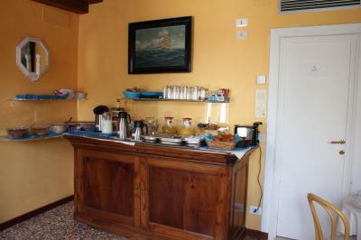 朝食は数種類のケーキ、温かいクロワッサンなどのイタリア風。おいしかったです。- 旅行時期
