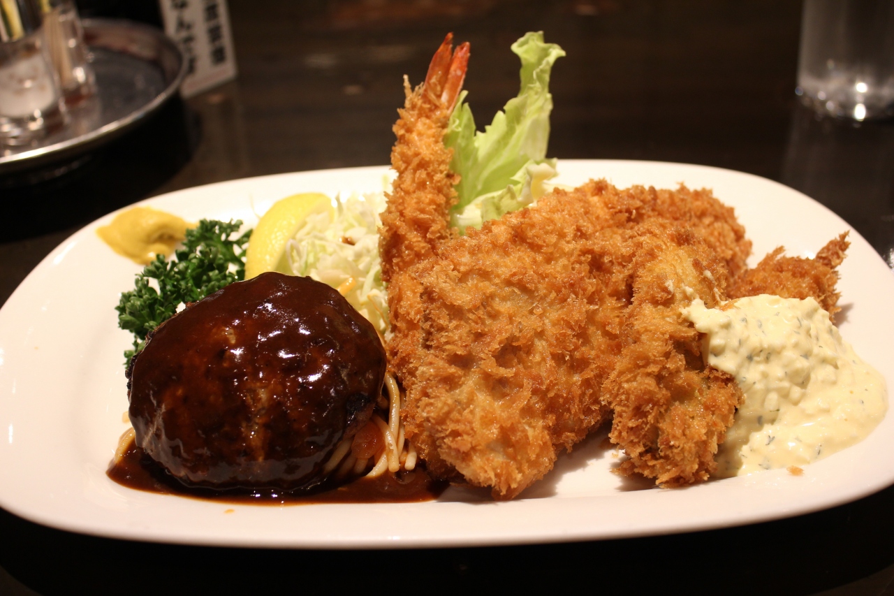 ハンバーグと揚げ物の両方が食べられるランチをオーダーしたらすごいボリューム!