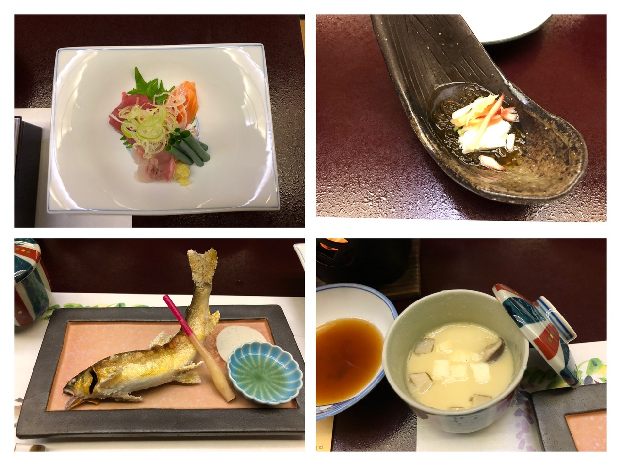 何を食べてもおいしい食事が印象的。地元の日本酒が数種類ある。