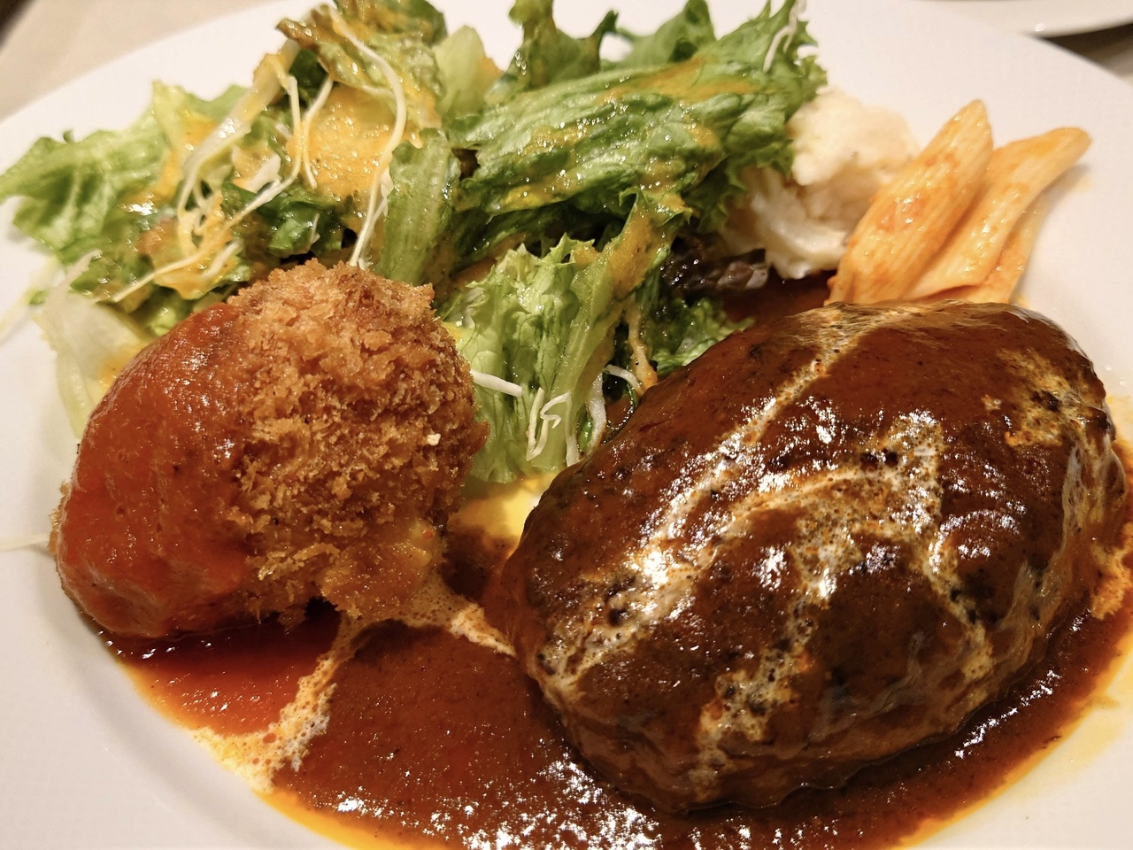 ハンバーグセットに付いてたカニクリームコロッケが一番おいしく、住んでたらランチしてもいいけど旅行者が洋食を食べるならここでなくともいいかも。?