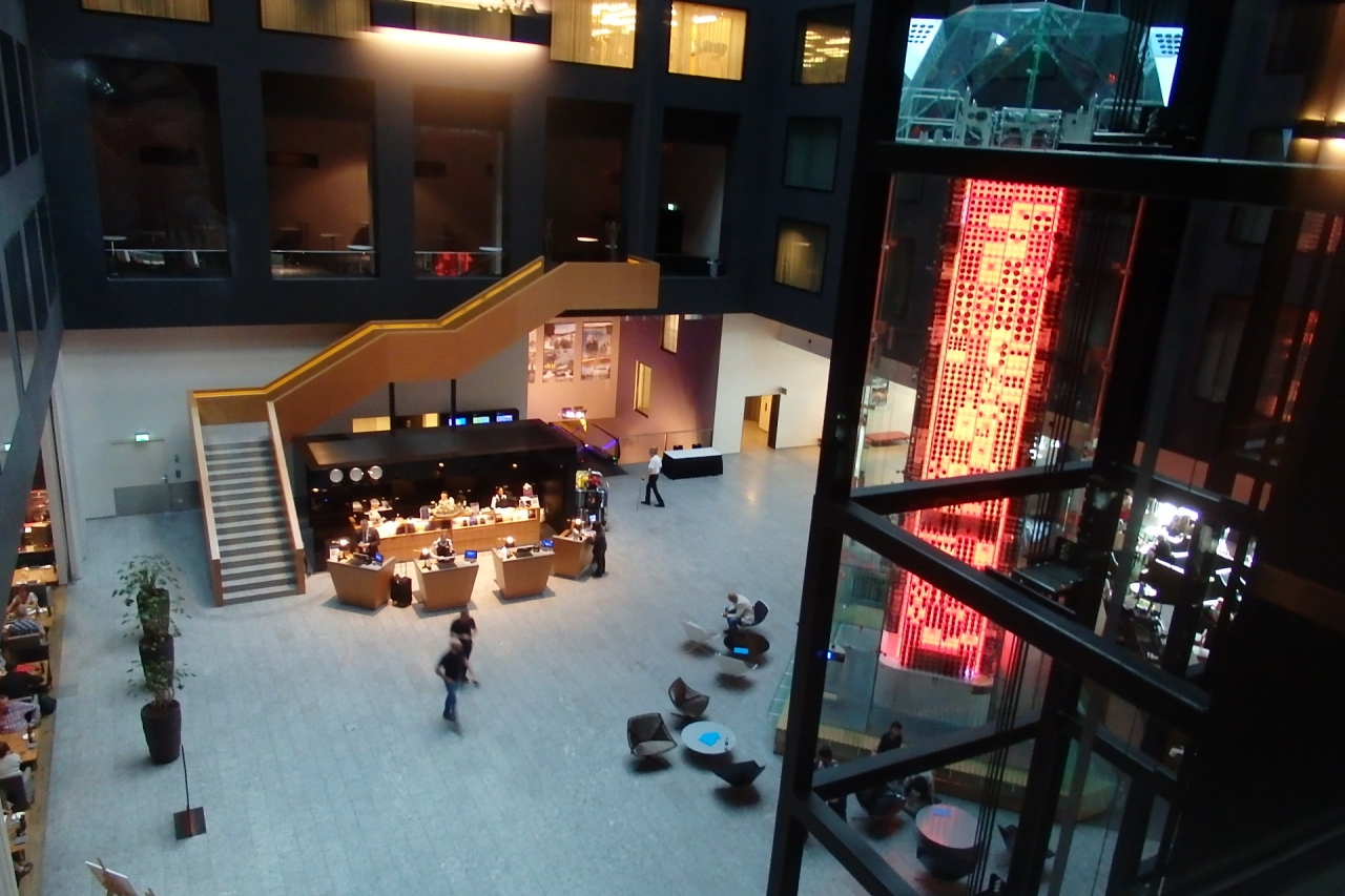 まずは、ロビー階のワインボトルタワーで、時間毎に行われるワイヤーハングのサーカス張りショーが面白い。 吹き抜けロビー側に面した部屋からは、そのまま楽しめる配置となっている。 日本にはないタイプのホテル。