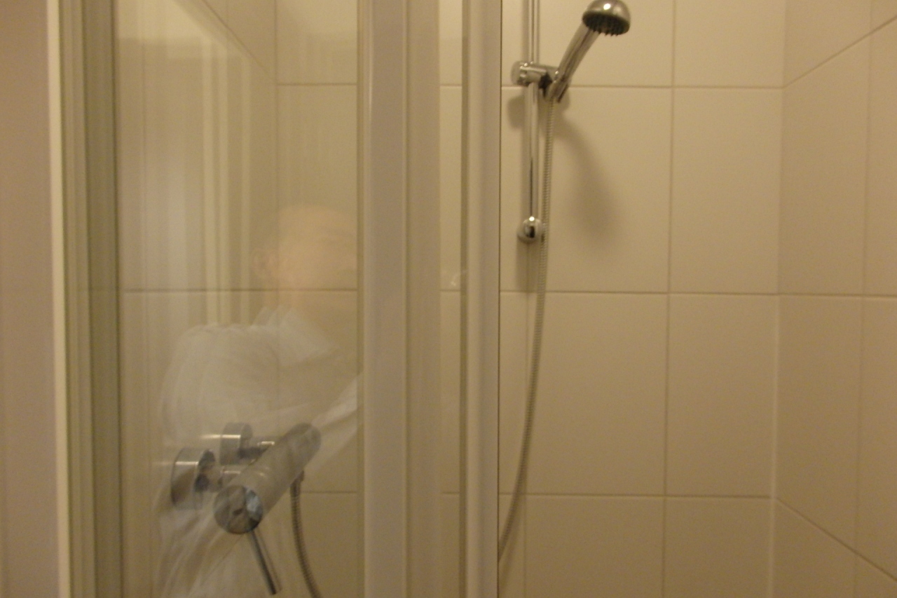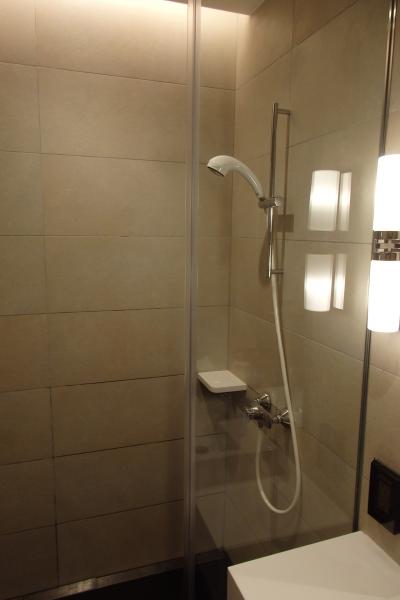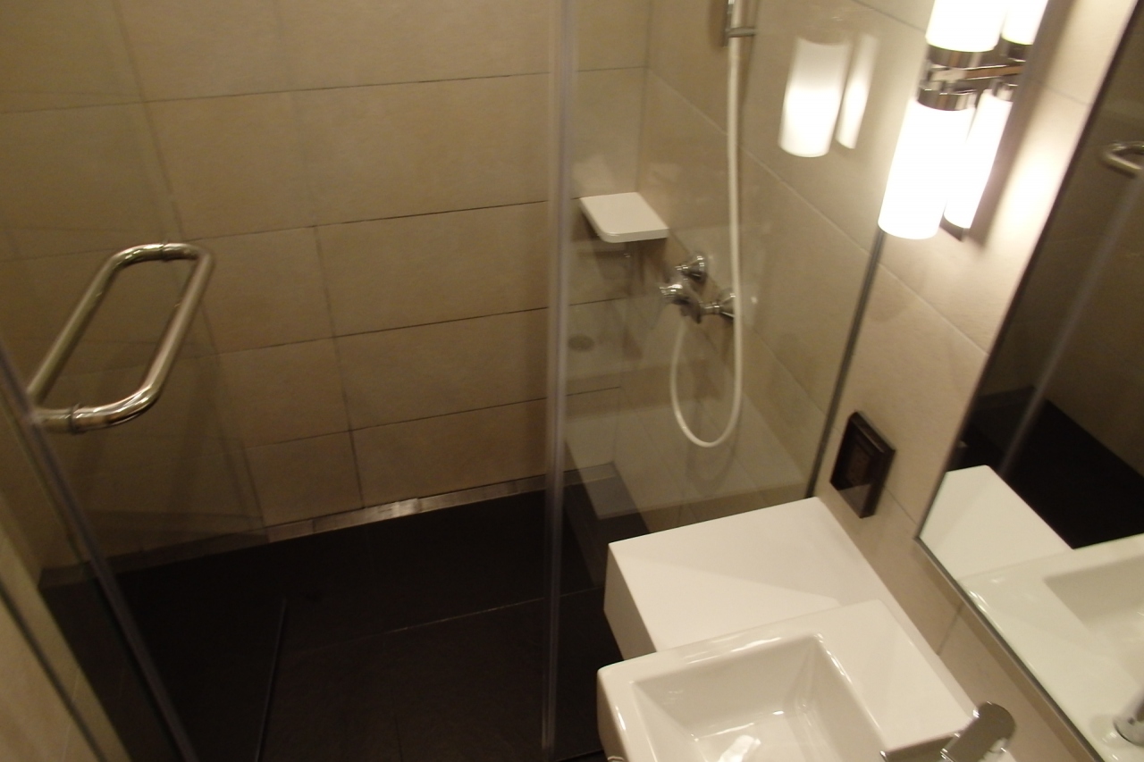 帰国後の仕事前にさっぱりしようとシャワーを浴びますが、部屋が狭いためか、湿気がこもり、すぐに汗が噴き出してきました。