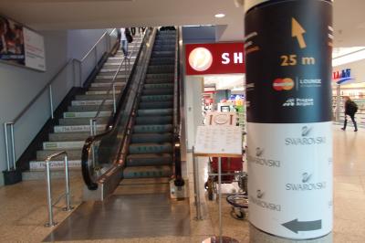 - 出国手続き後、右側のエレベーターで階下へ。サクララウンジとは向かいです。