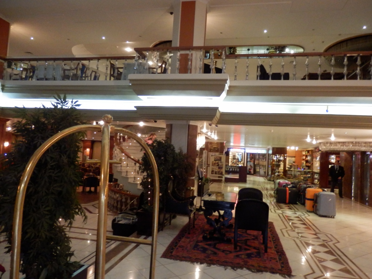 大ホールに大勢のバイキング形式で品数も多くなく、我々は安いツアーなのでしかたないが、他の高いツアーの人には気の毒な感じ。エレベーターがないので荷物を運ぶポーターさん大変。