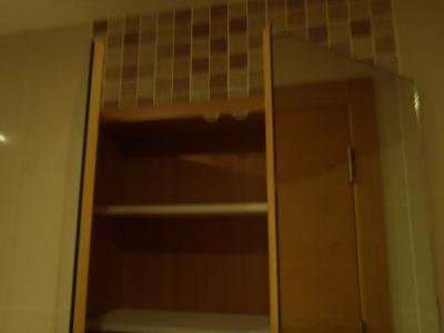 中にトイレもあります。広さは3畳ほど。鏡を開けて、荷物を置けます。