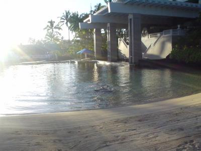 2000年と2003年にシェラトンのトップブランド、ミラージュポートダグラスに3泊ずつ(?)しました。広いラグーンプールとそれを囲むように、宿泊棟があります。宿泊は1棟を2グループで使うコテージ棟ゲストルームに泊まりました。1Fがゲストルーム、ダイニング、ベッドルーム1、2Fにベッドルーム、バスルーム、ランドリなどとなっていました。カーポートもありました。(レンタカーを利用して滞在するというスタイルがあっています) 全体に白を基調とし、1Fのゲストルーム(=リビングルーム)はとても広く、天井も高くて(4-5m)、私の利用したホテルとしては、最も広いかも。一流のリゾートホテルの標準と比較しても異質の感覚です。レンタルバイク(サイクル)があり、家族みんなで借りて、4マイルビーチを疾走し、20分ほどのスーパーに買出しにいったり、30分ほどでレインフォレストハビタットまで行ったりと、重宝しました。ホテル棟もありますが、コテージ棟がオススメです。 ポーターさんには気持ち良くチップくらいあげてください。