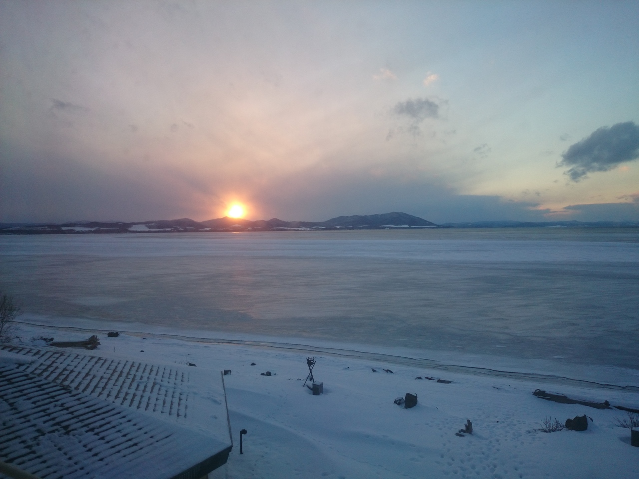 部屋からはサロマ湖を一望でき、夕日が沈む時間は必見です。