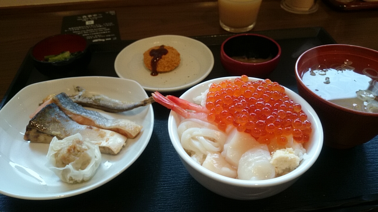 しかし、朝食は是非お試し頂きたい!ここの名物は海鮮丼!自分でネタを選び好きなだけ盛ることが出来ます。ちなみに、イクラ、甘エビ、ホタテ、イカがありご飯も白米、酢飯が選べます。かに汁も良かったです。