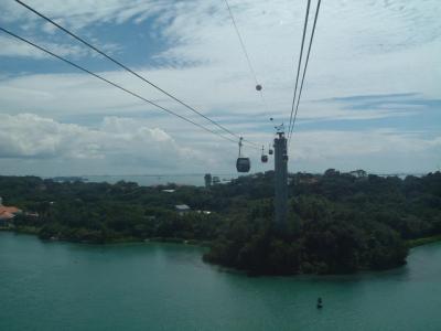 とりあえずマーライオンに会いに。セントーサ島に向かうケーブルカー。高い...