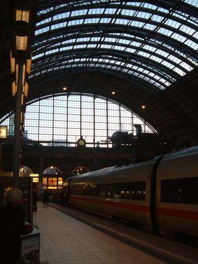 フランクフルトの駅。この電車を使って移動しました。ドイツ語は全くわかり...