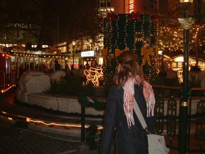 こんな感じで広場が電飾で飾られた屋台で埋められています。お香・人形・お...