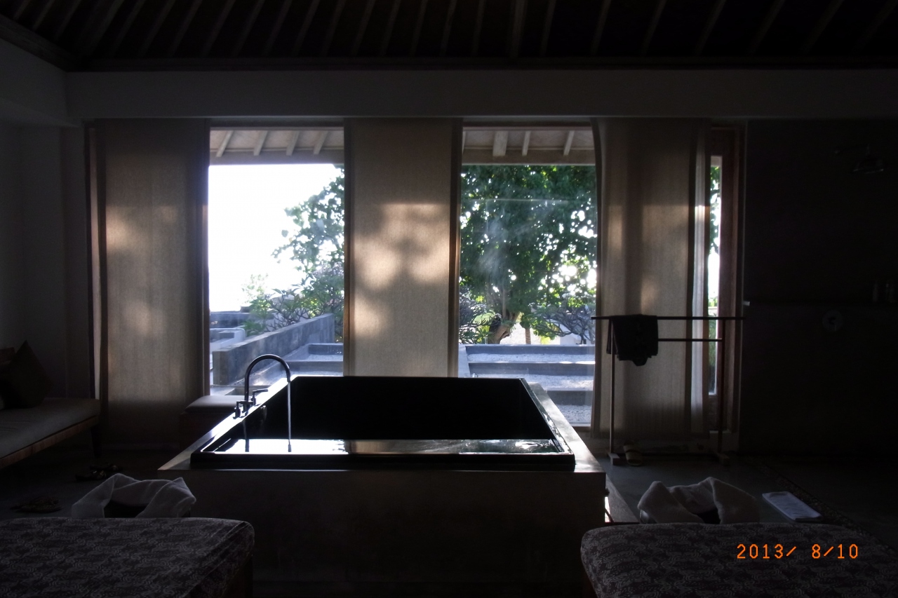 天然温泉の露天風呂がとてもよく、石でできた座れるとこで何度か休んでました。