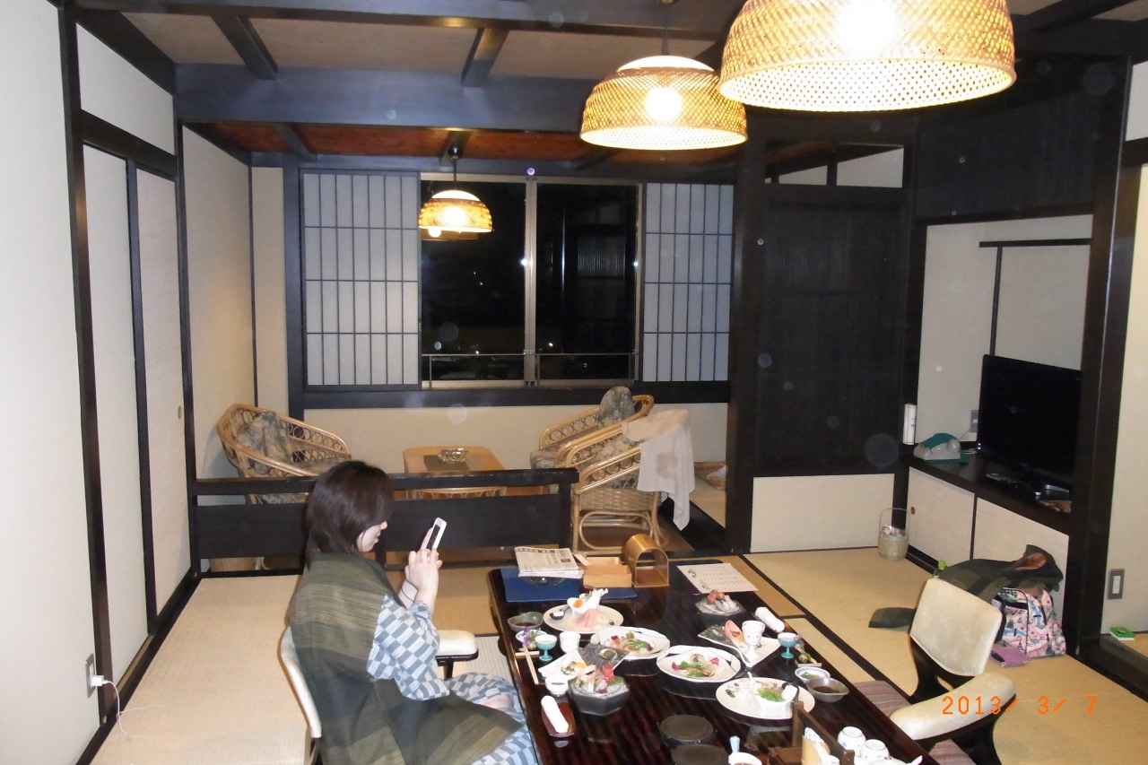 料理も新鮮な刺身、石で焼くお肉と、さすが、高級旅館って感じです。