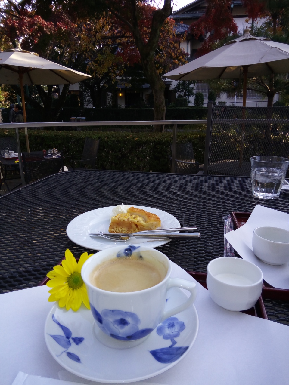 テラス席でアップル・クランブルタルトの2種類あるうちの、温かいRusticをいただきました。