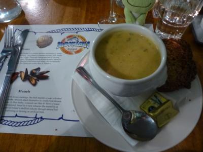 グラスワイン、スターター(スープなど)、メイン(フィッシュ&チップス)で19.95eurのコースをいただきました。