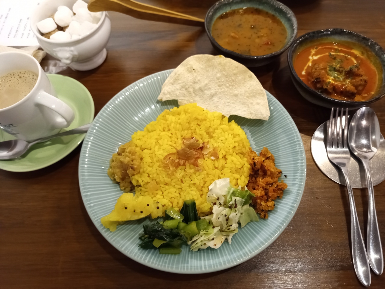 おいしいっ!特にポークビンダルーの酸味が、たまらなくおいしかったです。癖になりそうです。