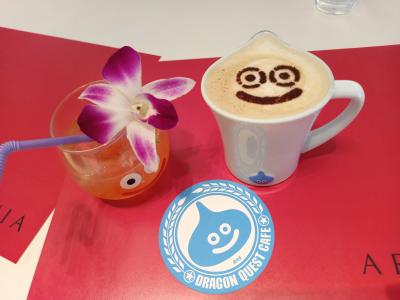 楽しみにしていたスライムパンケーキが休止中なのはとても残念でしたが、ラテアートがかわいいヘーゼルナッツラテ、ぷるぷるスライムベス(トロピカルマンゴー味)をいただきました。