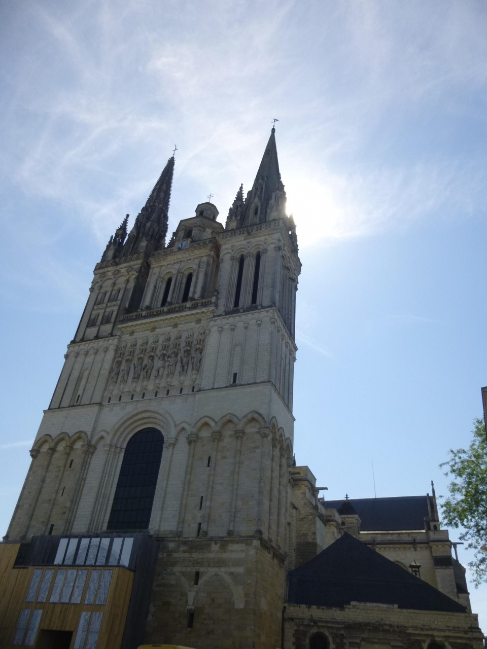 シャルトル大聖堂に影響を受けたというティンパヌム(半円形の装飾的壁面)は、残念ながら修復中で覆いがかかっていました。