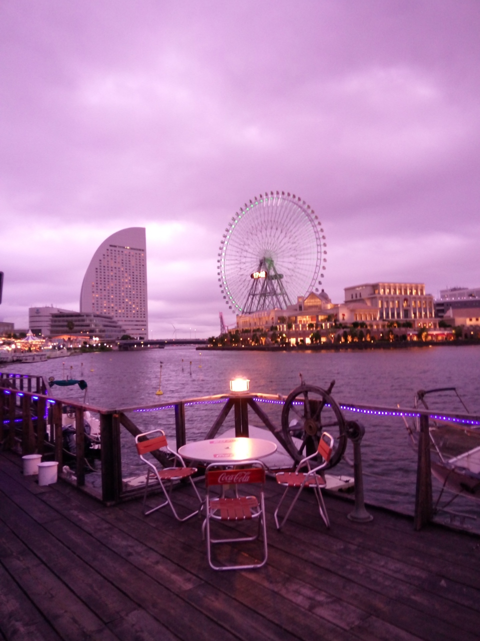 帰る頃には暮れてきて、みなとみらいのライトアップも楽しみました。