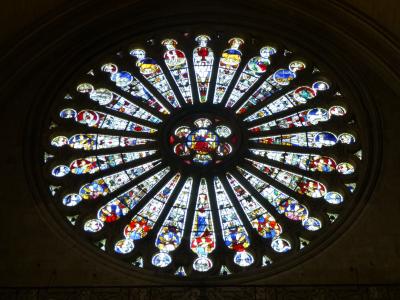 美しい薔薇窓は、薔薇窓には珍しいアポカリプス(黙示)が主題になっているそうです。12枚の花びらの先にゾディアック(12星座)が描かれていてかわいいです。