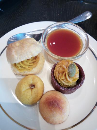 蕎麦饅頭は、想像(蕎麦粉生地に餡が包まれているのかな、と)とは逆の、餡の中に蕎麦団子が!しっかりした感じで、小さいながら食べた感があります。