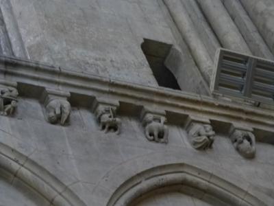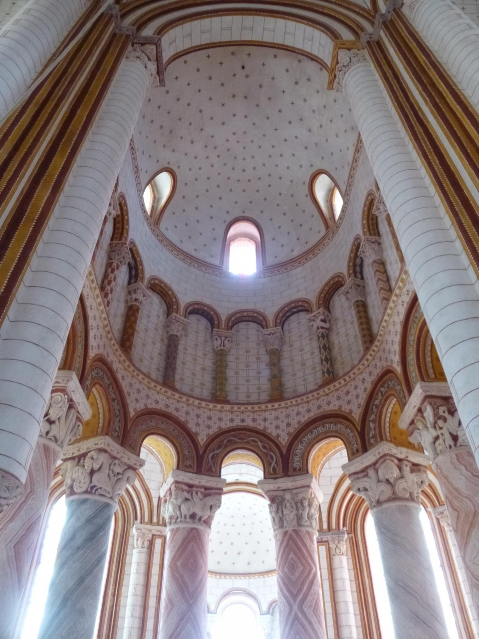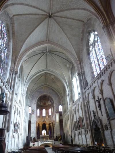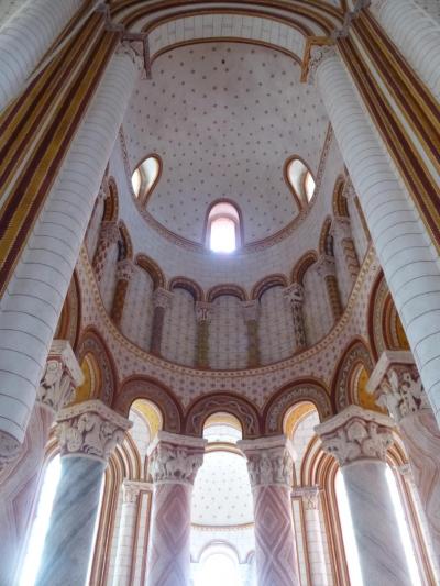 堂内には、100もあると言われるモディロン(ロマネスク装飾の持ち送り)、聖ラドゴンドの生涯が綴られたステンドグラス、巡礼路に多く見られる周歩廊を配した内陣のなど、見所たっぷりです。
