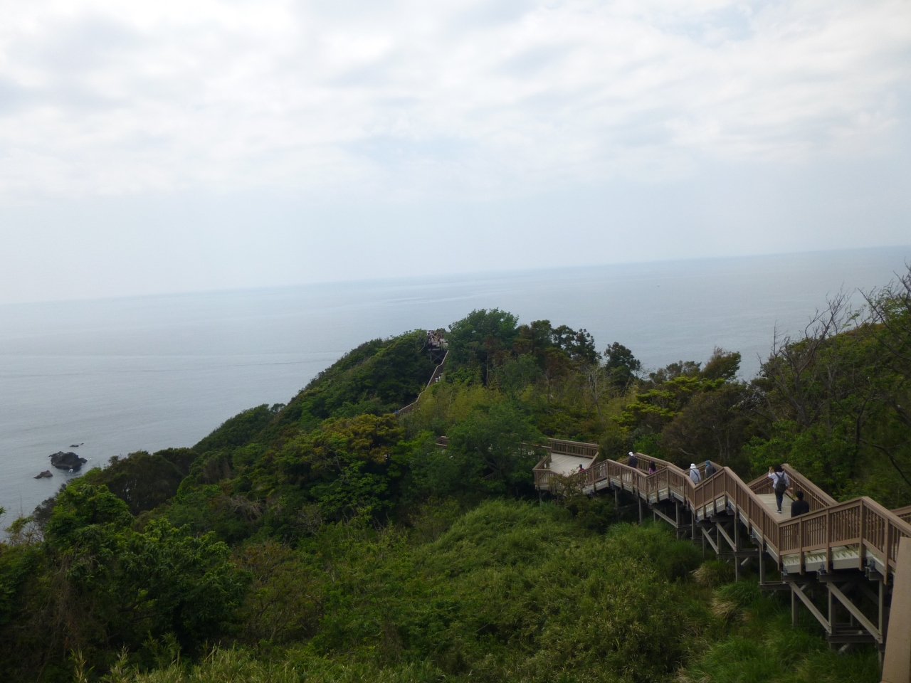 観光船乗場の脇にある駐車場に止めて歩きました。駐車場から手前の灯台までは往復3~40分と案内が出ていました。道のりは階段、坂とちょっとしたハイキングですが、とても景色がいいので気持ちがよかったです。