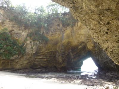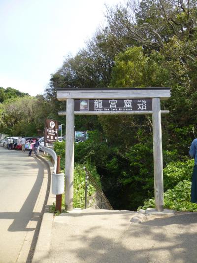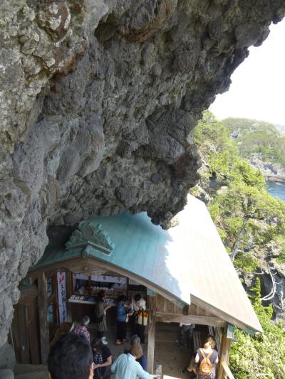 石段を降りて行くと現れる、神秘的な洞窟(海食洞)です。