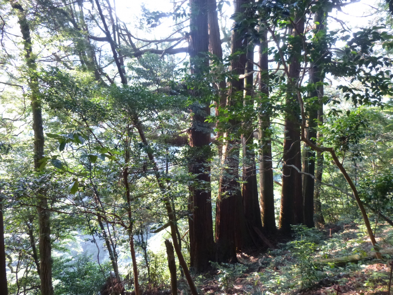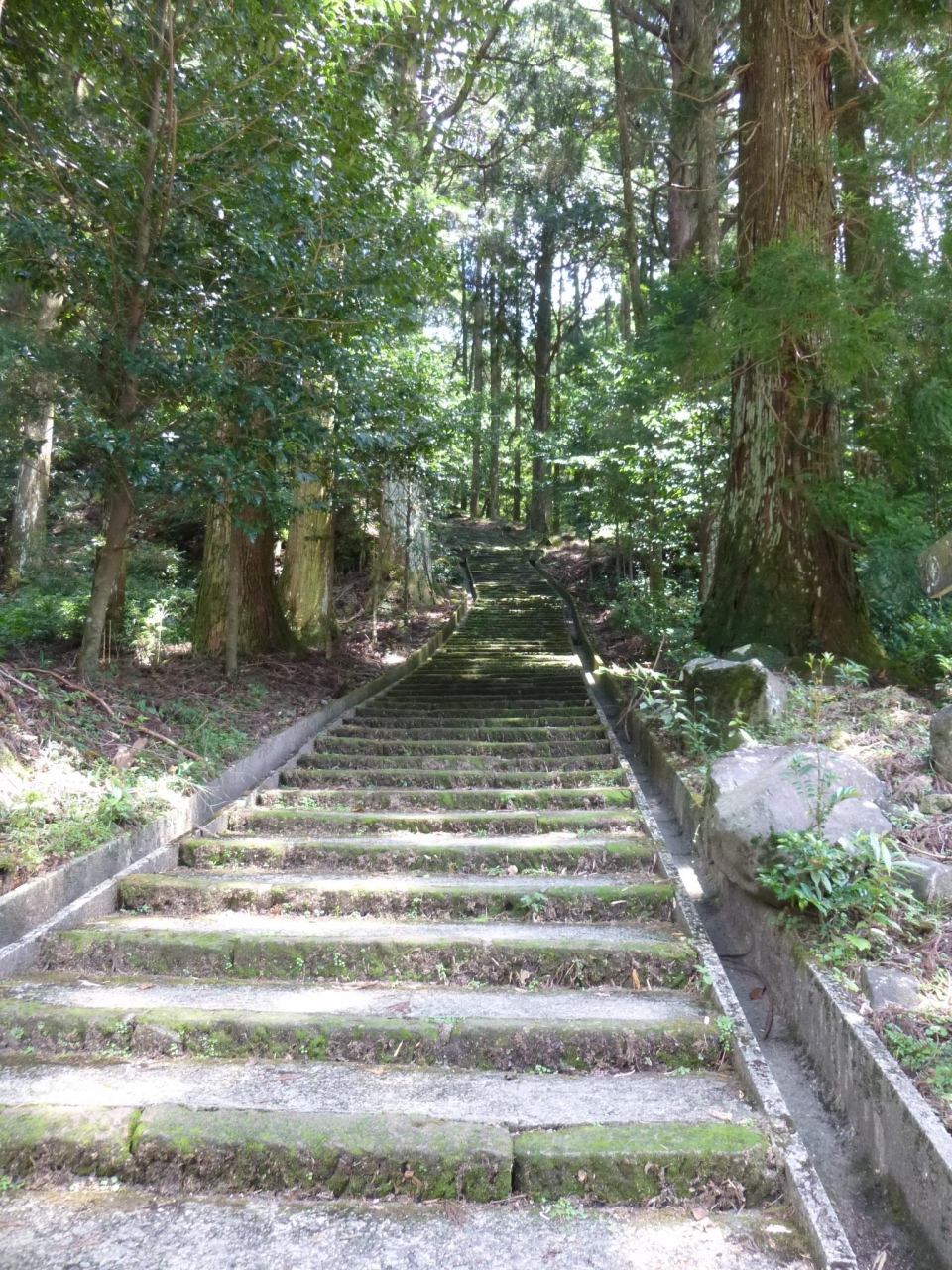 駐車場からすぐのところに大きな鳥居があり、そこから古宮址への参道がはじまります。