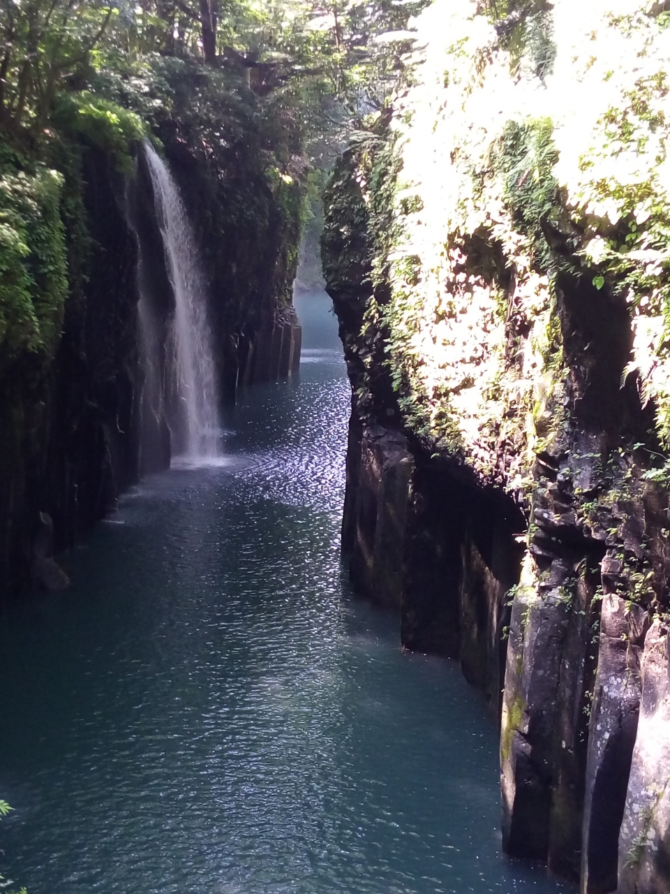 数日前に続いた大雨の影響で、楽しみにしていたボートは残念ながら運休でしたが、高千穂峡、大満足でした!