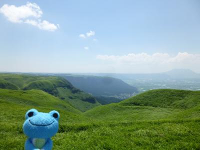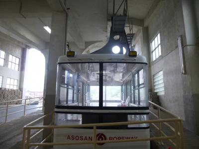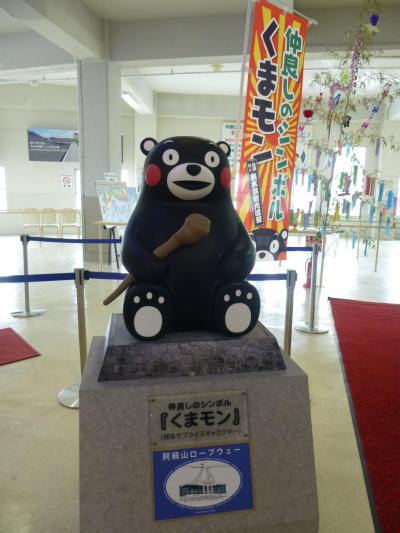 運休中ですが、代行バスが出ています。くまモンのオリジナルグッズも