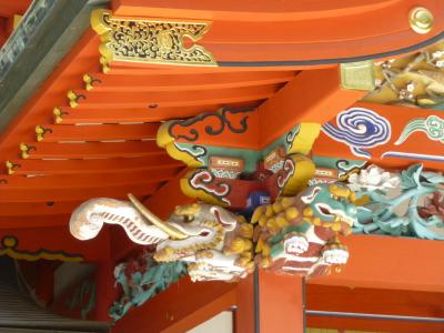 拝殿の木鼻(獅子&獏)は、色彩・造形ともに愛嬌があり素晴らしく、どの角度からも見ごたえがあります。