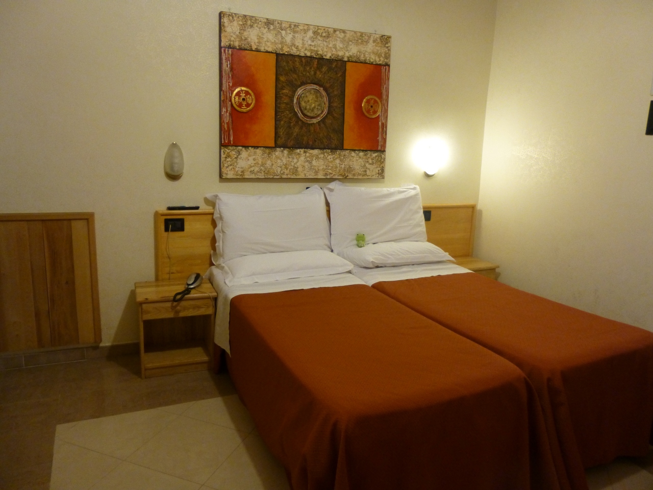 ローマの空港からタクシーで40~50分で着きました。料金は市内まで定額 48 eur(スーツケース代込)です。