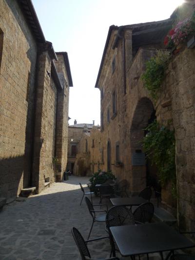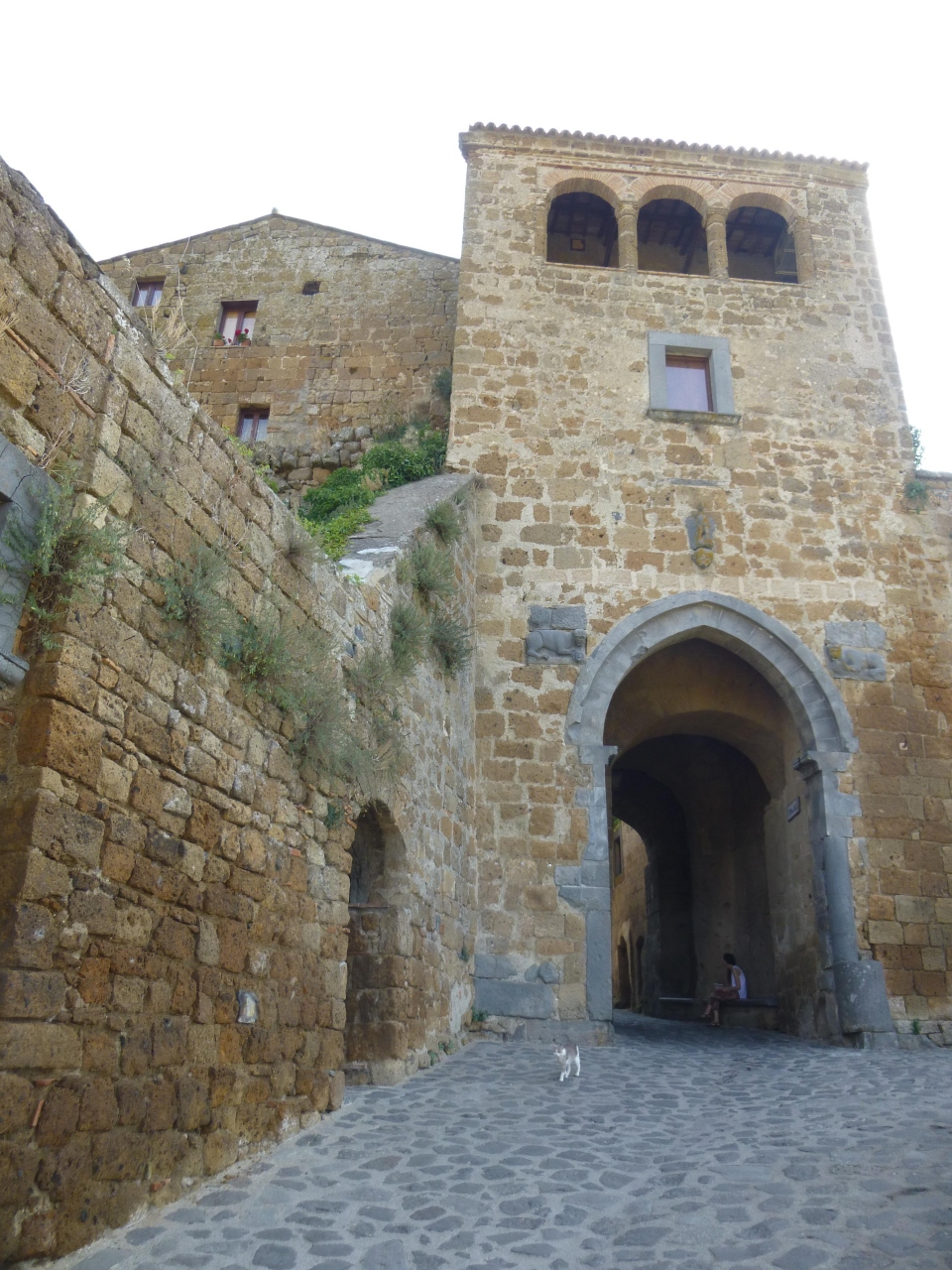 町は城壁で囲まれ、淡い蜂蜜色の石積みの家々がとてもかわいい街並みです。ただ、静まり返った空気、少し歩くと行き止まりになり眼下に削られた渓谷が広がる現実が、ここが「滅びゆく町」なのを感じさせます。とても独特な雰囲気でした。