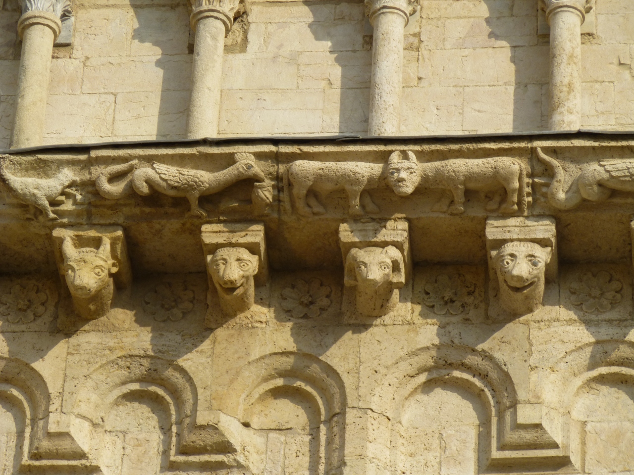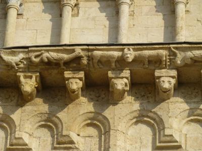 外観のレリーフも、ロマネスクらしい動物などがあちらこちらに見られ、楽しいです。