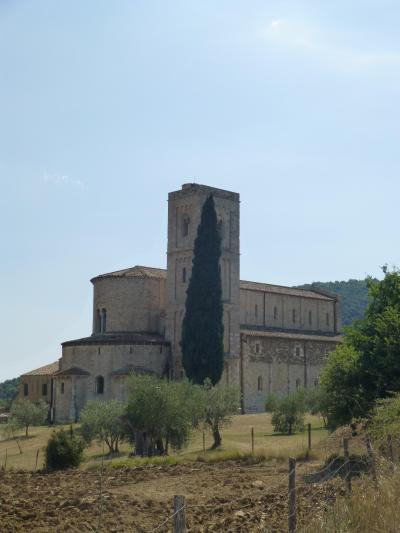 オルチャ渓谷の西にあり、葡萄畑に囲まれて佇むその外観が秀逸なロマネスクの聖堂です。