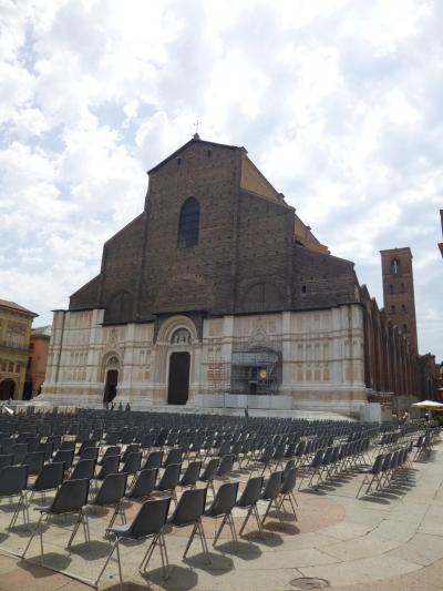 ボローニャの守護聖人ペトロニアに捧げられ、1390年、「世界で一番大きな教会」として着工。しかし、時のローマ教皇(ピウス四世)が許さず、両脇部分の建設は中止になったそうです。