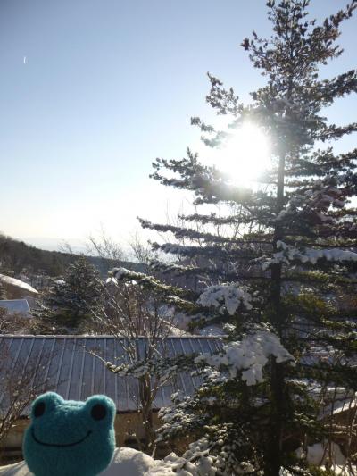 まずは貸切露天風呂へ。小雪が舞う中、雪見を楽しみながら体の芯まで温まりました。