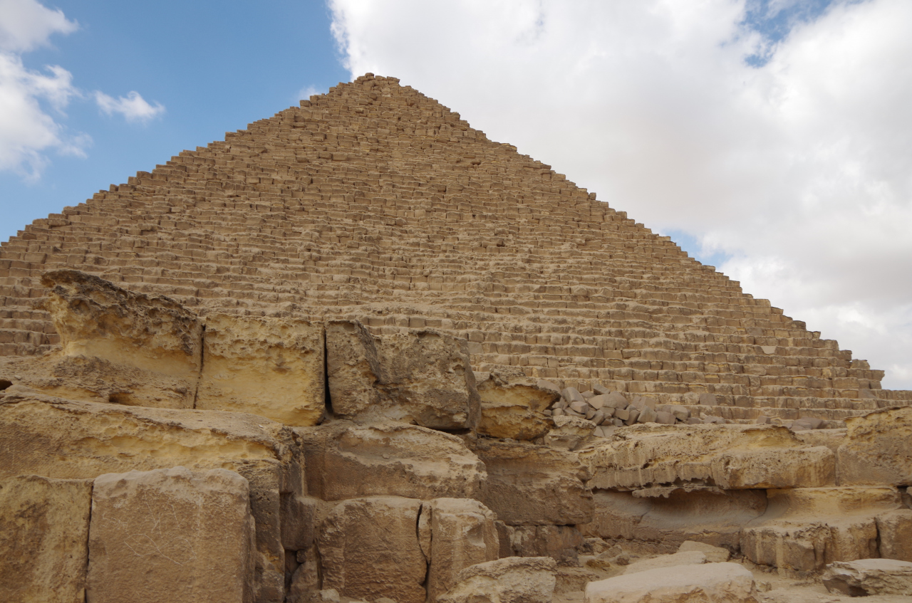 三大ピラミッドで一番小さなピラミッドです。小さいとはいえ60メートル以上あり、真下から見上げるとやはり大きいです。